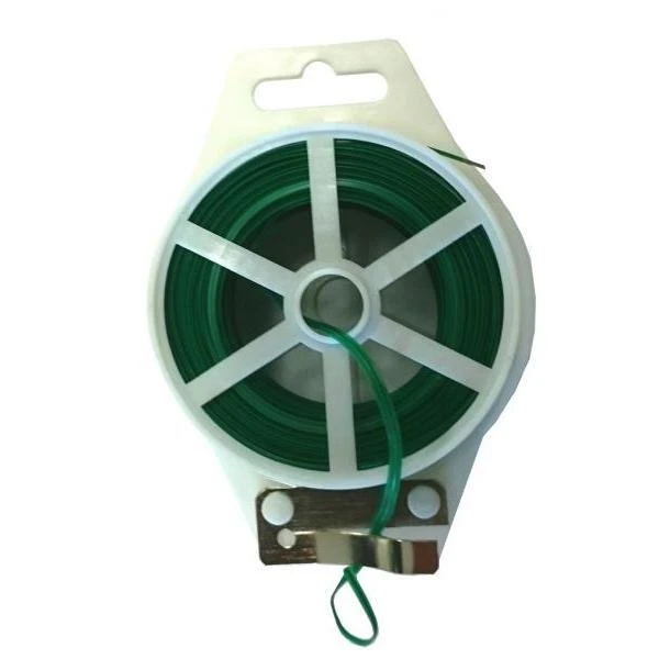 De bobijn bevat 50 meter groene binddraad in kunststof waarin een zeer fijne ijzerdraad zit verwerkt. Zowel geschikt voor het tijdelijk aanbinden van planten als voor het toebinden van bijvoorbeeld afvalzakken.